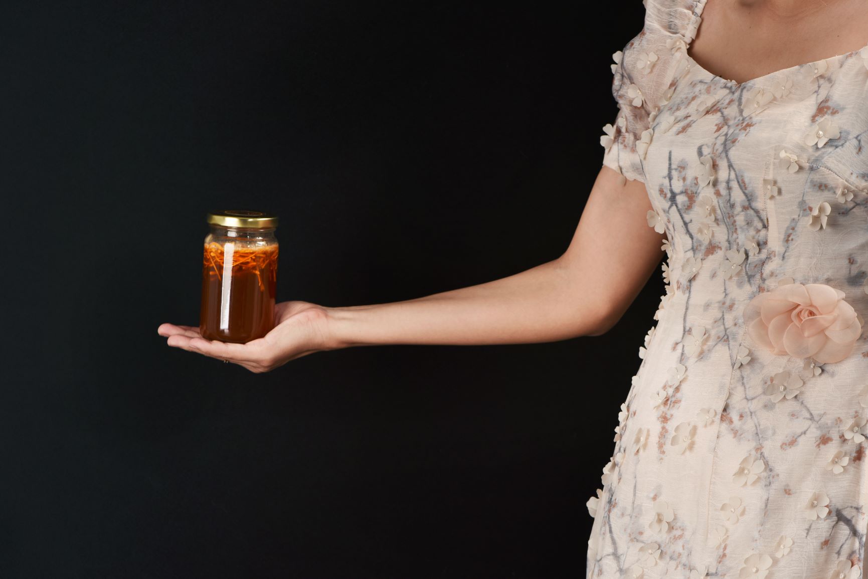 - Ngâm mật ong: Cho mật ong vào bình hoặc lọ thủy tinh đã tiệt trùng, sau đó dùng kẹp gắp sạch thêm Đông Trùng Hạ Thảo sấy thăng hoa vào từng đợt (khoảng 10gr đông trùng tươi/300ml mật ong). Dùng kẹp gắp đẩy các sợi Đông Trùng Hạ Thảo ngâm hẳn hoàn toàn trong mật ong. Đậy kín nắp và ngâm trong khoảng thời gian 15-30 ngày trở lên tại nơi khô ráo thoáng mát là có thể sử dụng.