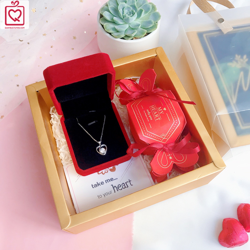 Giới thiệu Quà tặng From My Heart gồm dây chuyền bạc trái tim, hộp kẹo kèm túi xách nắp hoa Luv145 tặng 14/2 bạn gái