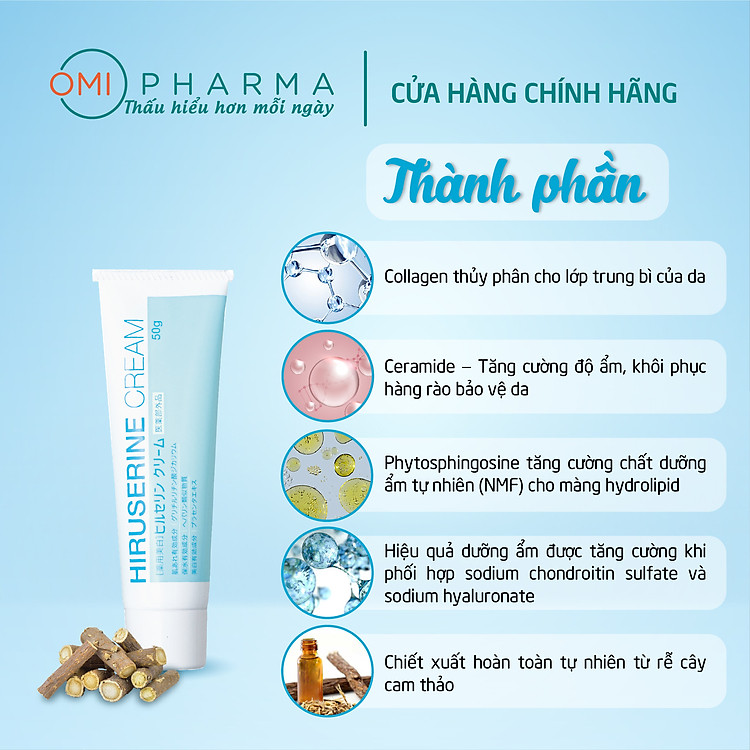 thành phần “chiết xuất nhau thai cừu” giúp ngăn ngừa sự hình thành và làm mờ các đốm nám sạm hình thành trên da. - Kem dưỡng mềm mịn và làm trắng da Hiruserine Cream cải thiện làn da sần sùi, khô ráp, cáp ẩm toàn diện cho da đàn hồi hơn, giúp dưỡng trắng da cho các vùng da bị sạm màu mang lại làn da mịn màng, rạng rỡ. Sản phẩm sử dụng các thành phần lành tính, mang đến hiệu quả tốt cho người sử dụng, đáp ứng mọi tiêu chí an toàn.