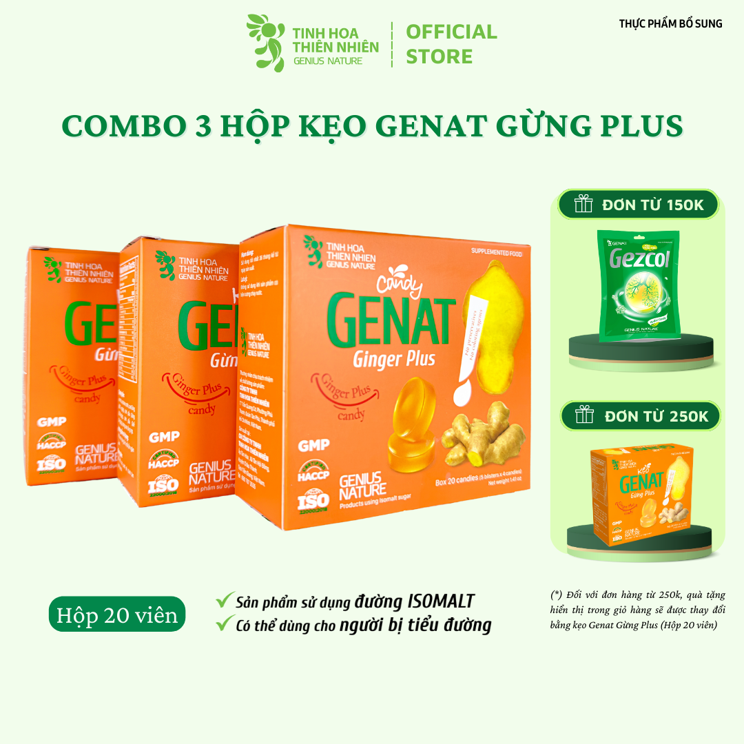 Combo sản phẩm bao gồm 3 hộp kẹo Genat Gừng Plus