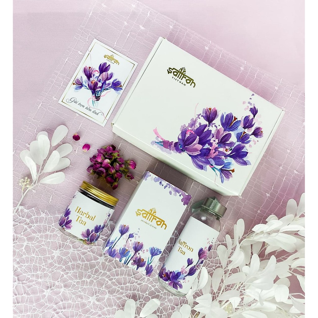 Thực phẩm và đồ uống > Nhu yếu phẩm > Thực phẩm đóng hộp > Khác || Quà tặng Nhụy Hoa Nghệ Tây Saffron Salam 1Gram/hộp tặng trà nụ hồng Shiraz 25gr và Bình nước 300ml