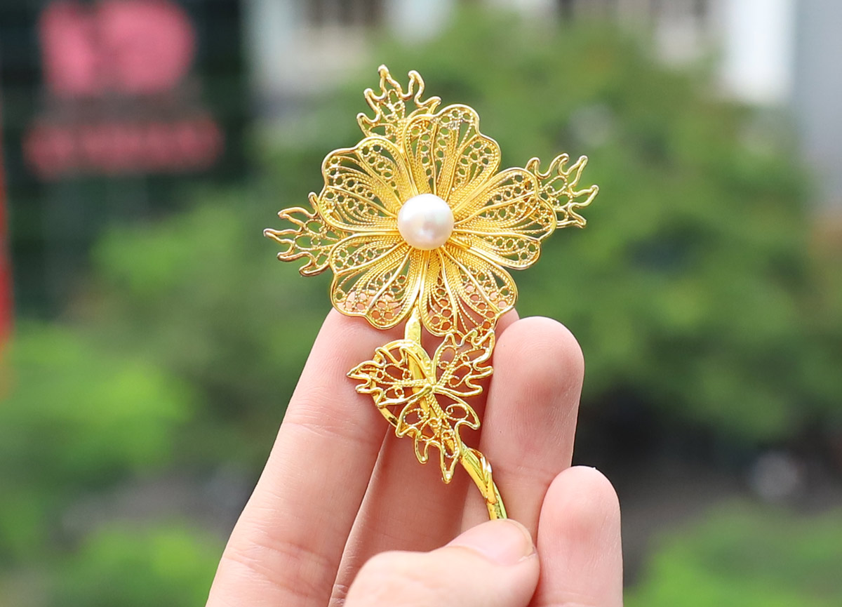 Hoa cài áo mạ vàng được thiết kế rất tinh tế, sang trọng