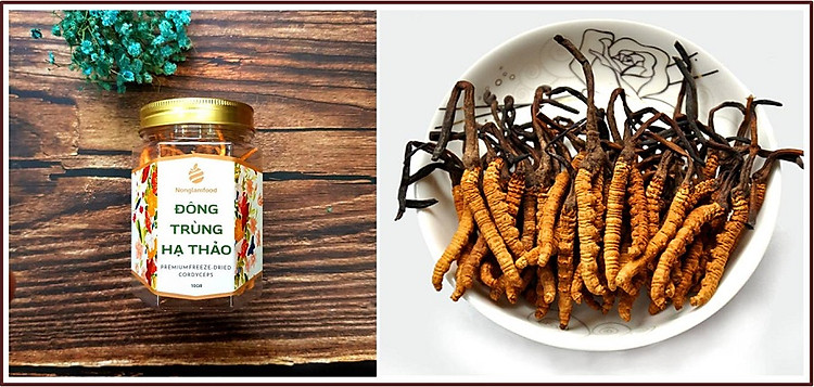 *Đông trùng hạ thảo loại thượng hạng : 100% đông trùng hạ thảo tuyển chọn loại lớn. Vị ngọt thanh, tính ôn hòa. Sử dụng hãm trà giúp tăng sức đề kháng, tăng cường hệ miễn dịch.