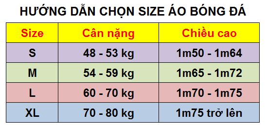 (Lưu ý: tùy theo dáng người mặc, chọn size lấy theo cân nặng là chính, chiều cao dùng để tham khảo)