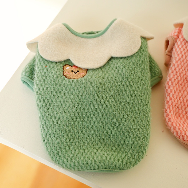 Giới thiệu Quần Áo Chó Mèo Thu Đông- Áo len lông có cúc bấm cổ hoa đáng yêu