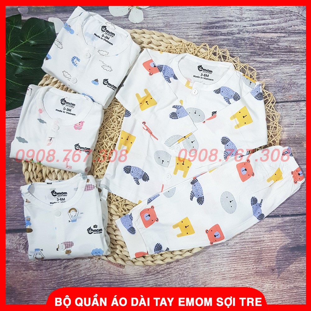 Bộ Đồ Quần Áo Dài Tay Cho Bé Chất Sợi Tre Emom Mềm Mịn