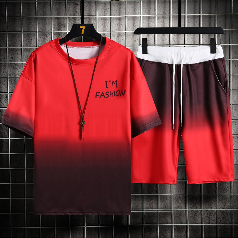 Thời Trang Nam > Bộ || Bộ Quần Áo Mùa Hè Nam Ngắn Tay Màu Loang In Chữ I’M FASHION Cá Tính Sành Điệu Zenkonam MEN QA 104V1 R