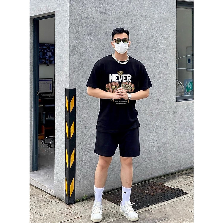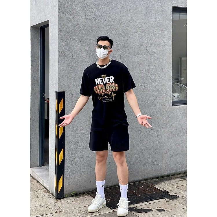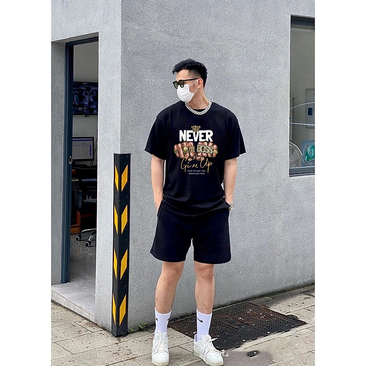 Bộ Quần Áo Nam Nữ Thiết Kế NEVER GIVE UP Chất Liệu Cottom Cao Cấp Form Rộng Tay Lỡ Phong Cách Trẻ Trung Năng Động Cá Tính Unisex