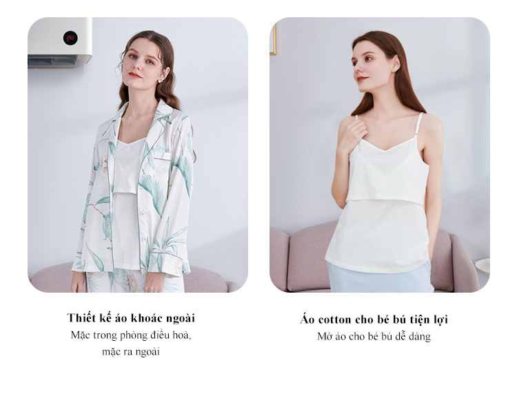 Pijama sau sinh mở áo cho bé bú tiện lợi, áo khoác ngoài mẹ mặc nằm điều hoà không lo cảm lạnh