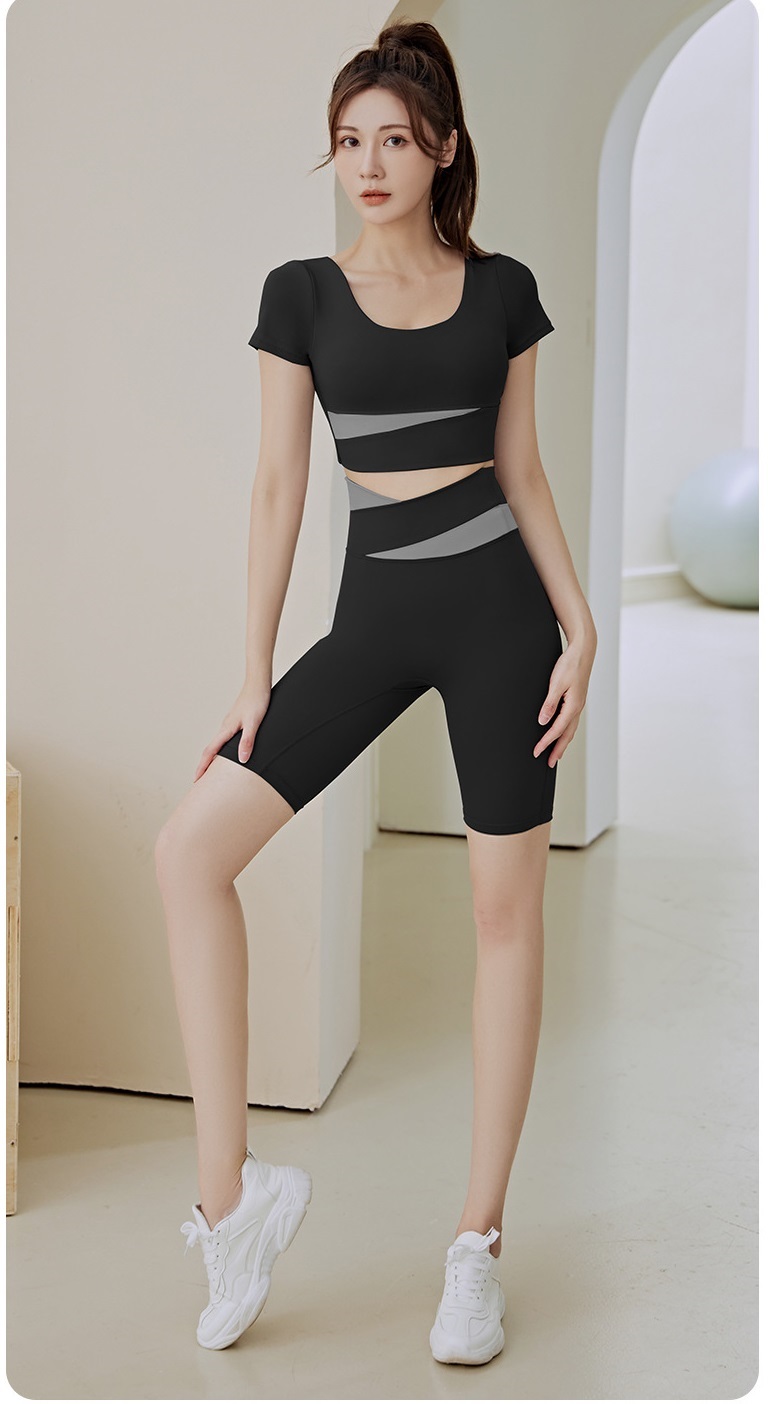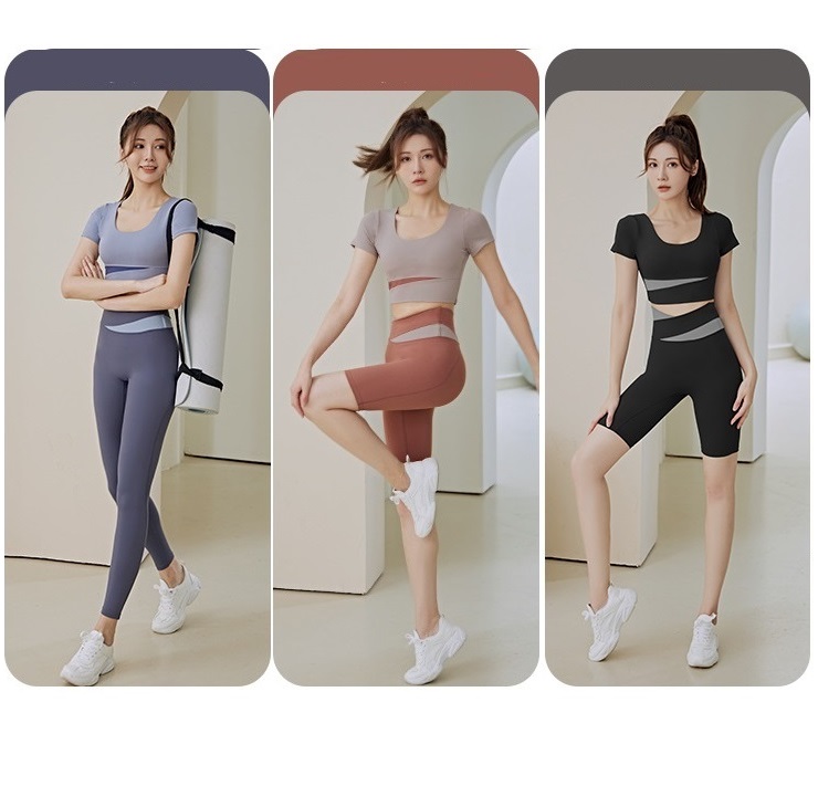 Set đồ tập gym nữ nổi bật là cách phối màu bằng các đường vải chéo tạo sự trẻ trung, khỏe khoắn bắt mắt thu hút ánh nhìn