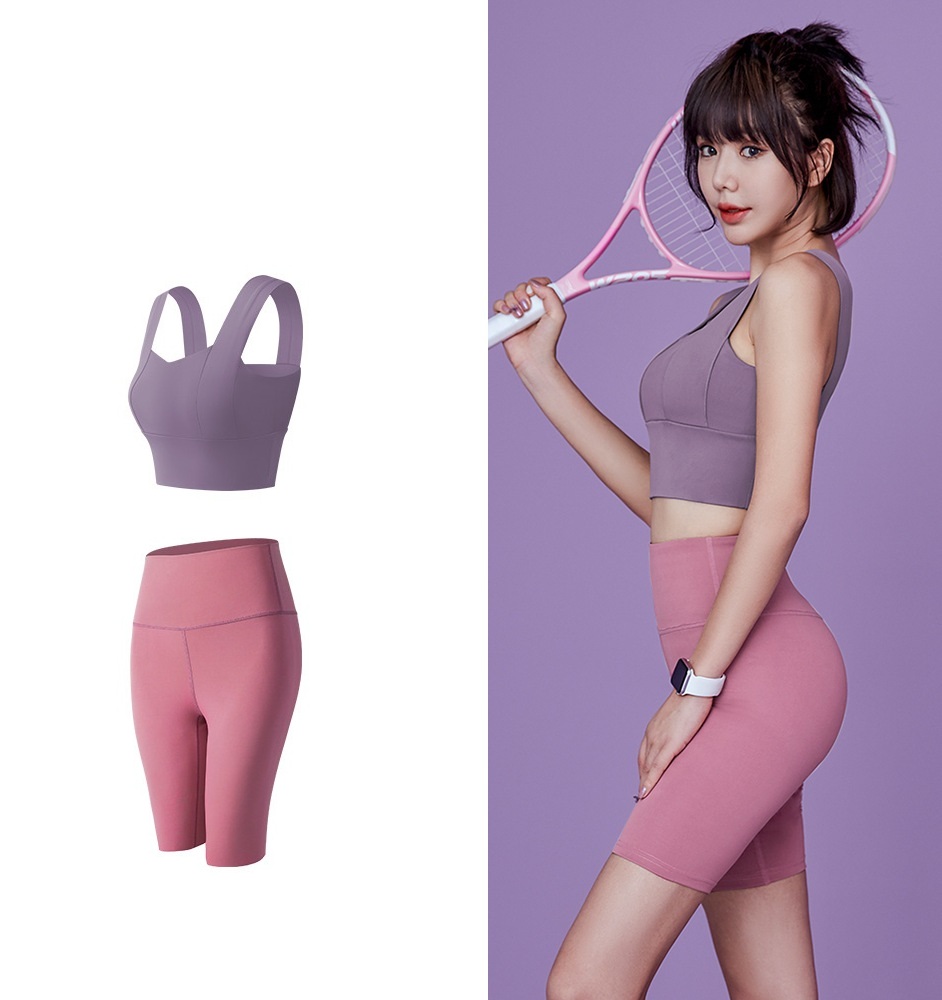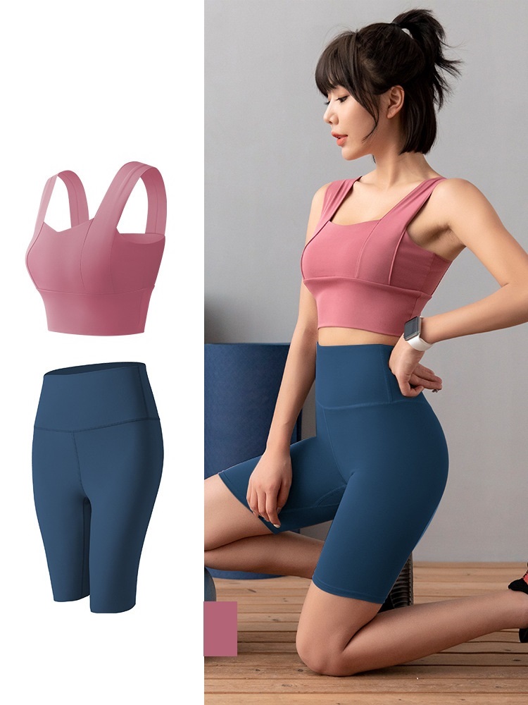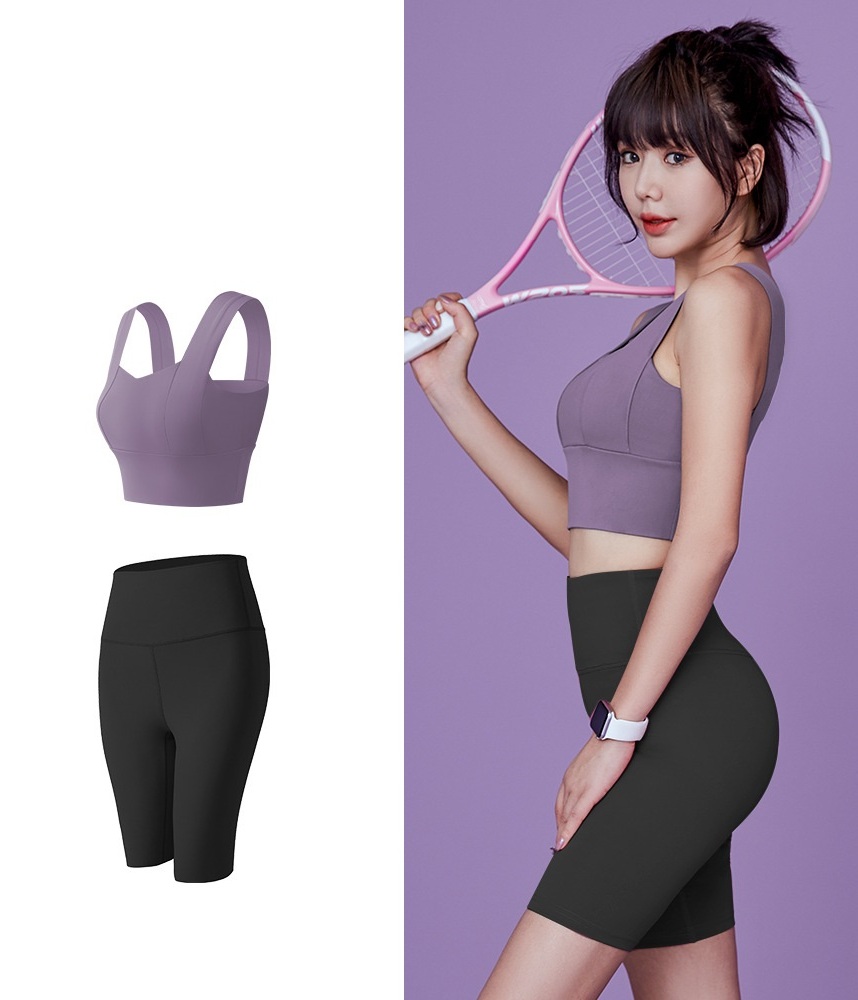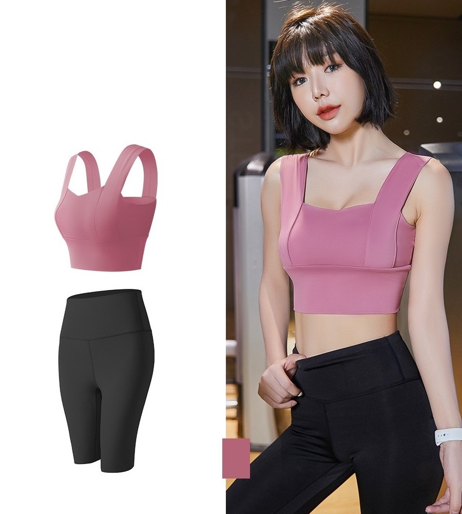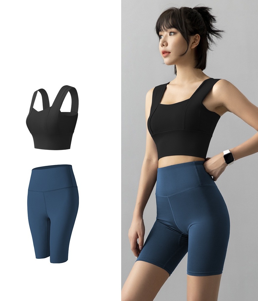 - Thiết kế áo bra có đệm mút với quần legging ôm body lửng