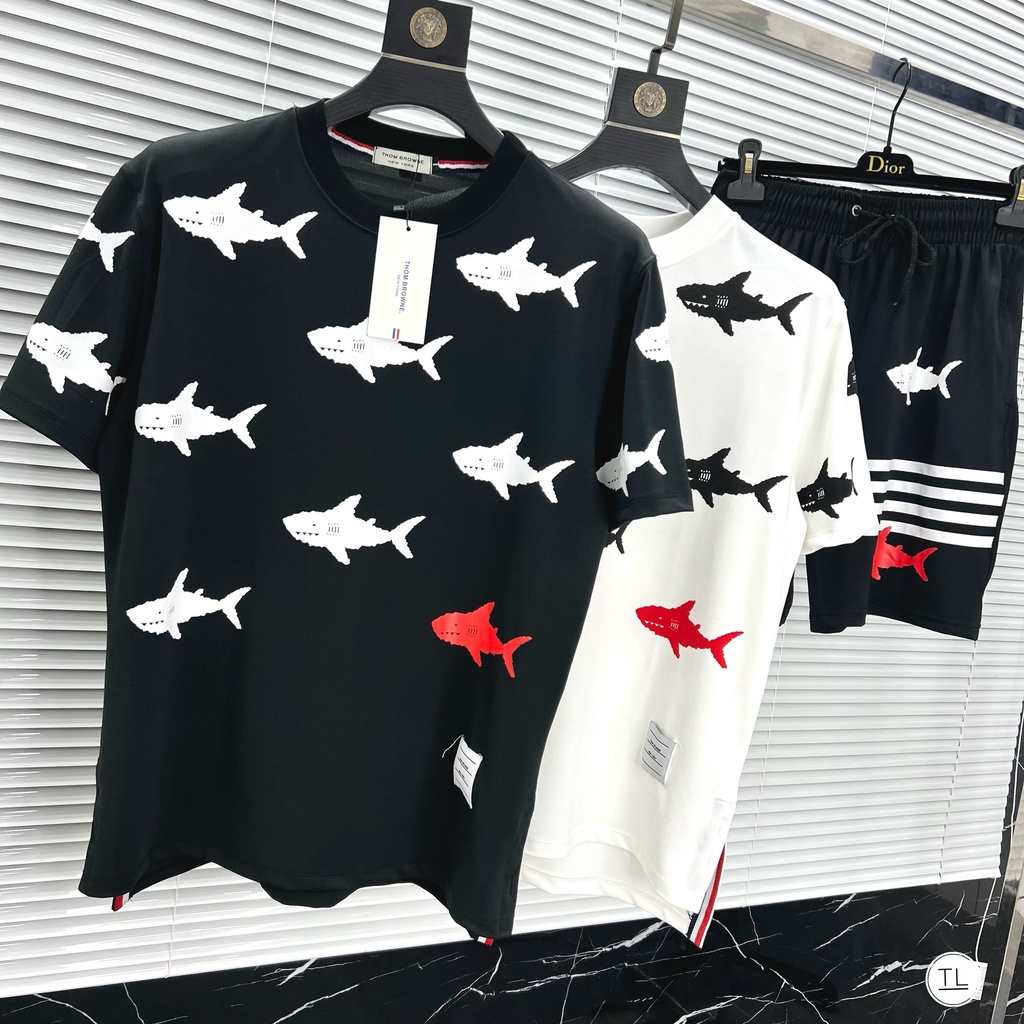 Giới thiệu Bộ quần áo thể thao nam mùa hè cổ bẻ tay ngắn áo polo thom browne hình cá (ảnh thật)