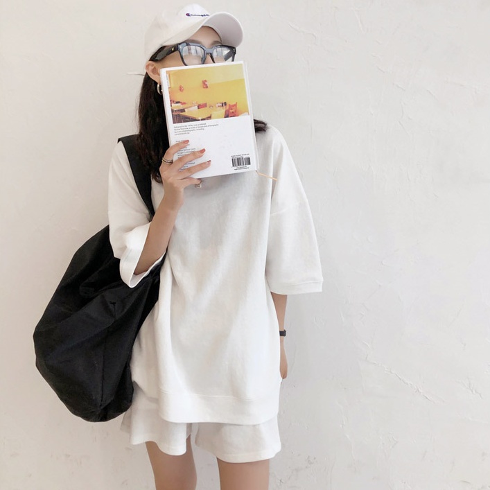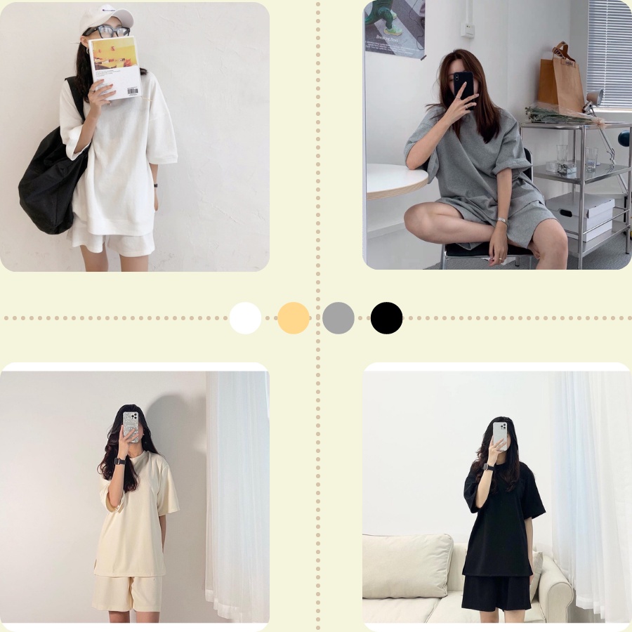 Mô tả sản phẩm: - Chất liệu thun tăm tổ ong cực đẹp nha - Bộ sản phẩm bao gồm 1 áo thun nỉ cộc tay kèm quần short rộng rãi thoải mái - Freesize form dưới 70kg mặc vô tư ạ. Các bạn nam bon chen vô tư nha! - Màu Sắc: Trắng, Đen, Ghi