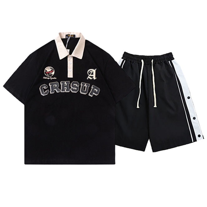 Thời Trang Nam > Bộ || Bộ Quần Áo Thun Nam Nữ Mùa Hè Áo Polo CRHSUP Phối Quần Short Sọc Kẻ Bấm Cúc 2 Bên Thời Trang Zenkonu T227 + S042