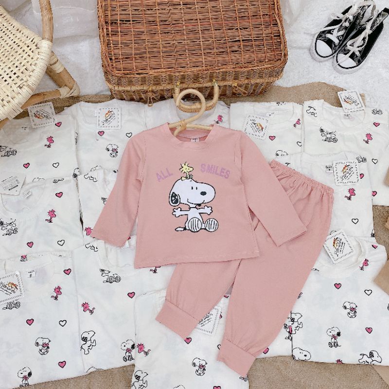 Thời trang trẻ em & trẻ sơ sinh > Quần áo bé gái > Com lê & đồ bộ || Bộ Quần Áo Trẻ Em Dài Tay In Hình Cún Smiles Vải Cotton Siêu Hót Cho Bé Gái Từ 10-22kg MÃ DT06