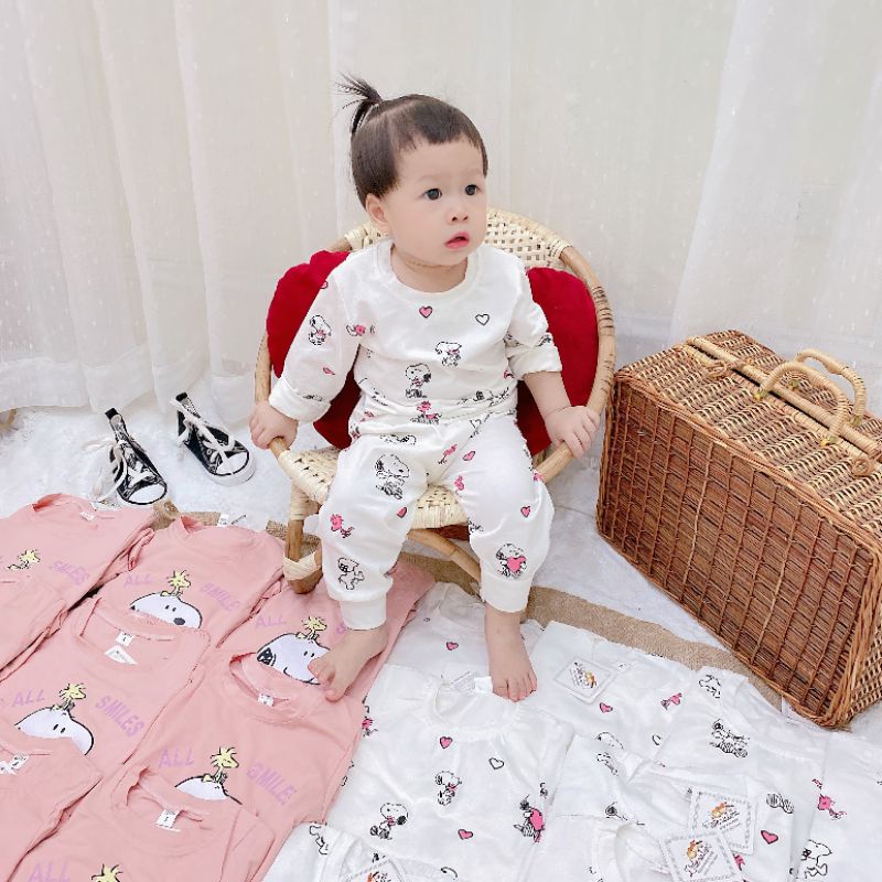 Giới thiệu Bộ Quần Áo Trẻ Em Dài Tay In Hình Cún Smiles Vải Cotton Siêu Hót Cho Bé Gái Từ 10-22kg MÃ DT06