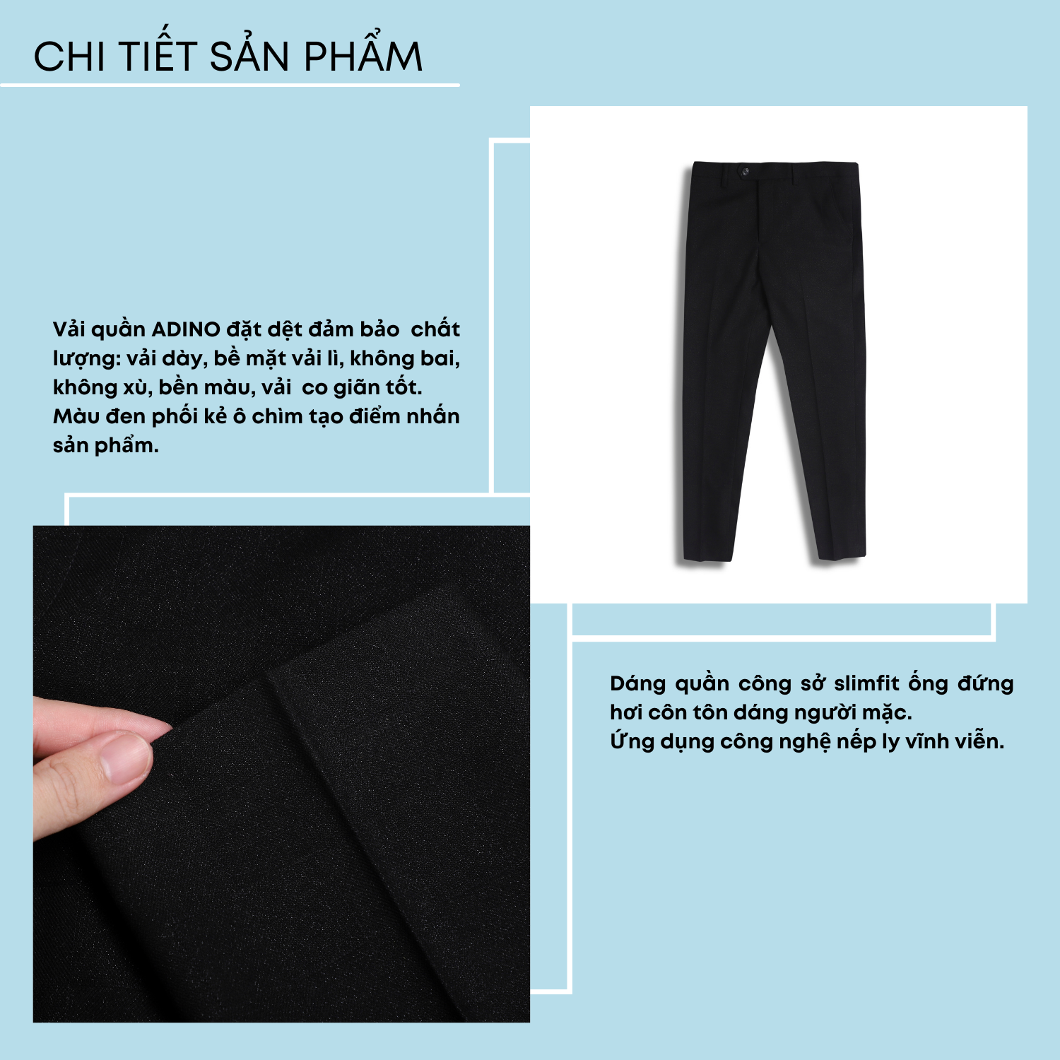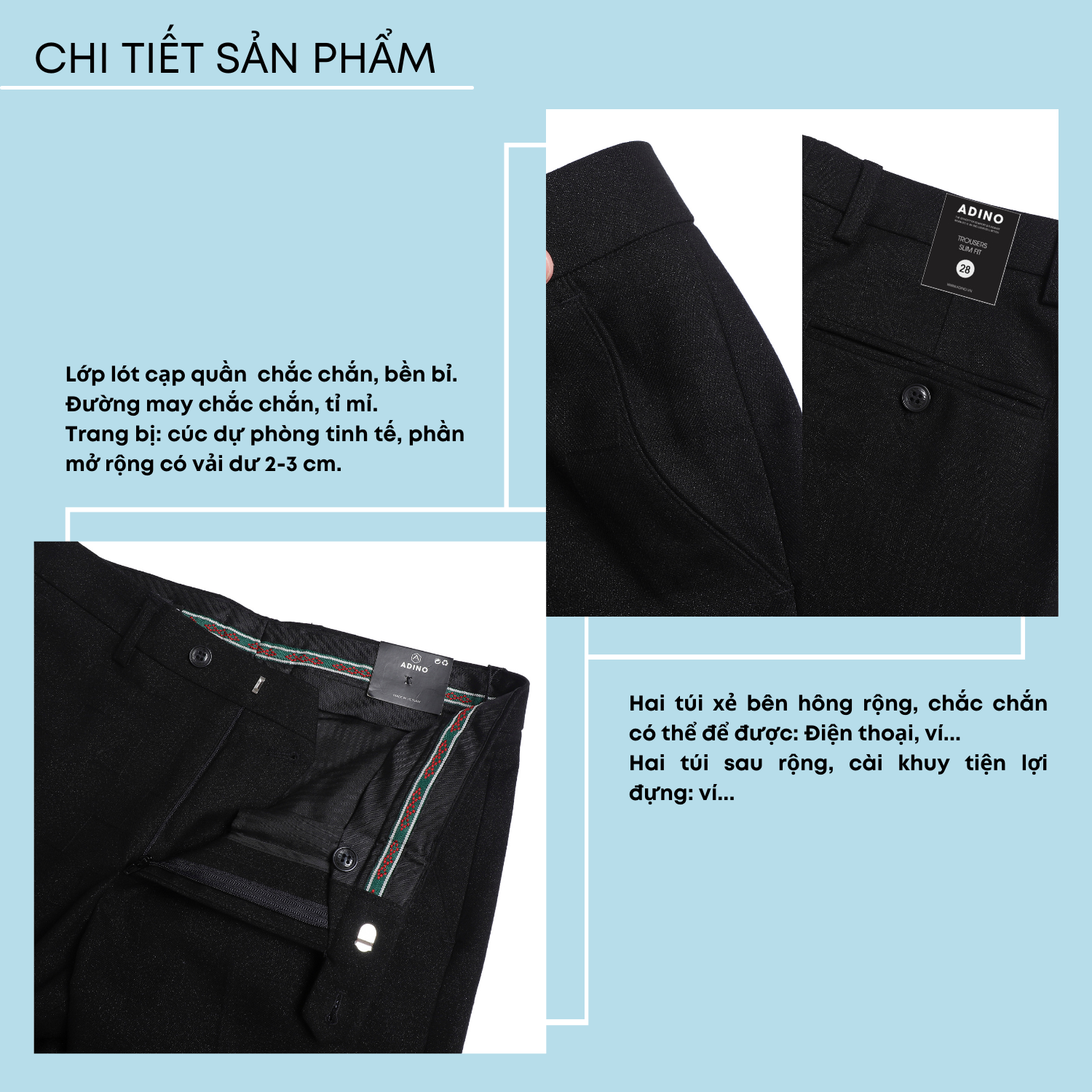 Quần âu nam công sở màu đen kẻ ô ADINO vải cotton dày không bai không xù dáng slimfit ống đứng hơi côn Q08
