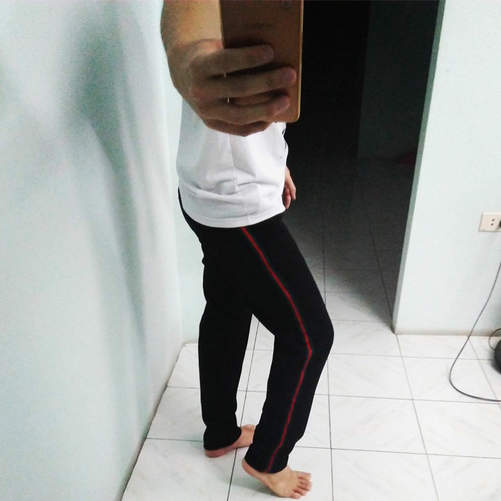 Quần Âu Nam Đen Kẻ Đỏ Phong Cách Hàn Quốc