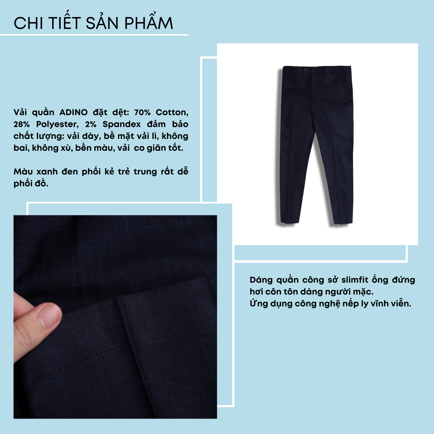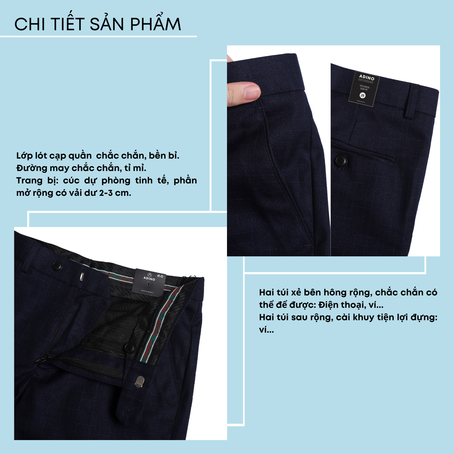 Quần âu nam màu xanh đen phối kẻ ADINO vải cotton không bai xù dáng slimfit công sở trẻ trung QA100