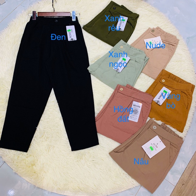 Kiểu quần đằng trước đính khuy giả khóa,đằng sau cạp chun co giãn mặc thoải mái cực kỳ.