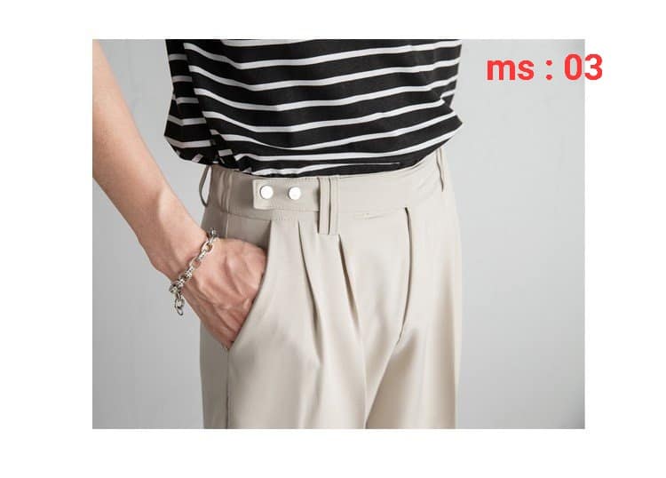 Quần Baggy Nam Tây Âu Vải Kaki Ống Côn Dáng Suông Nút Giữa Lưng Chun 1 Bên Co Giãn Dễ Mặc