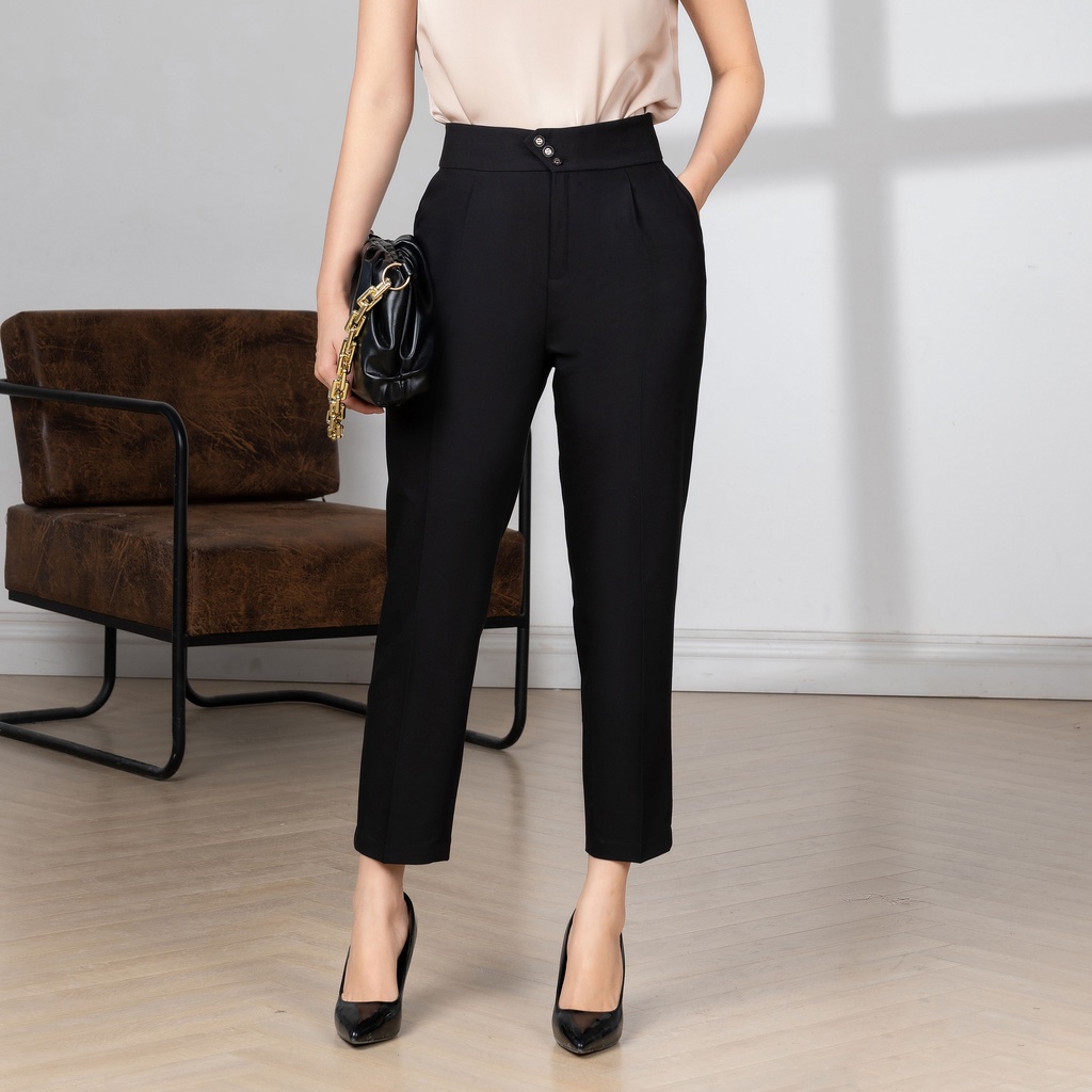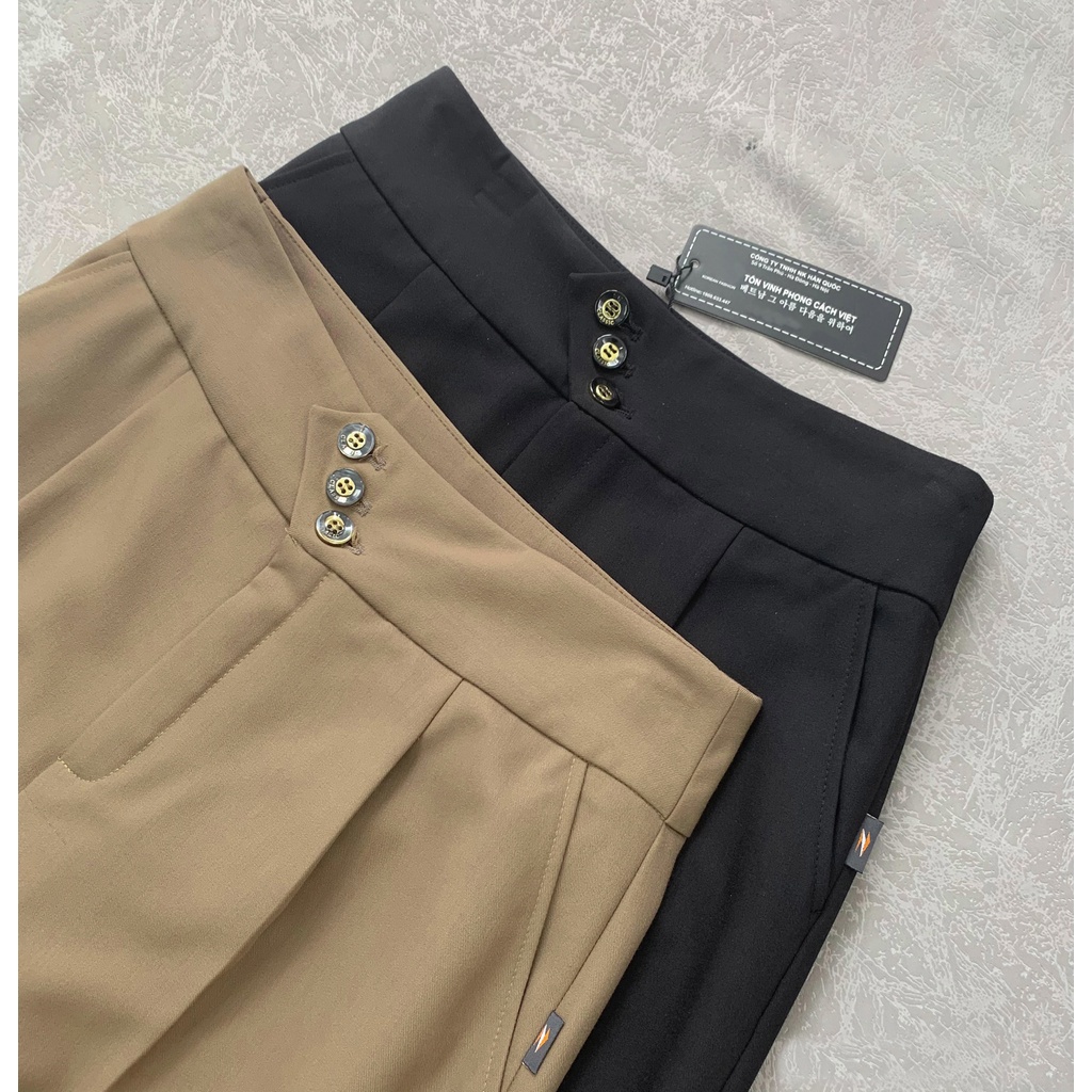 + Quần baggy công sở thiết kế cạp cao phối 3 cúc tinh tế, màu sắc nhã nhặn dễ mặc dễ phối
