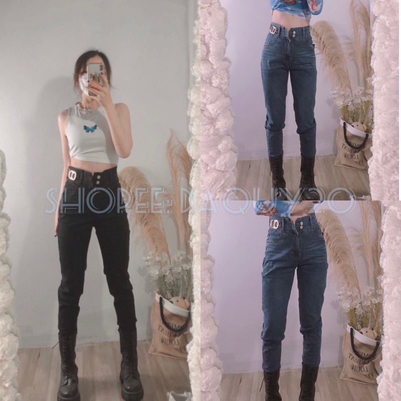 Quần jean hai cúc DC hai màu, hách dáng chất co giãn Hàn Quốc