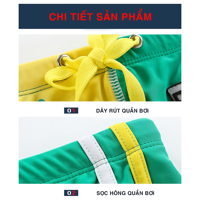 Thương hiệu : Desmiit Kiểu dáng : Quần bơi nam dạng tam giác Chất liệu : Polyester, Spandex Màu sắc : Xanh đen phối Đỏ, Vàng phối Xanh lá, Trắng phối Xanh dương, Xanh lá phối Xám Kích cỡ : M, L, XL, XXL (Vui lòng tham khảo bảng size)