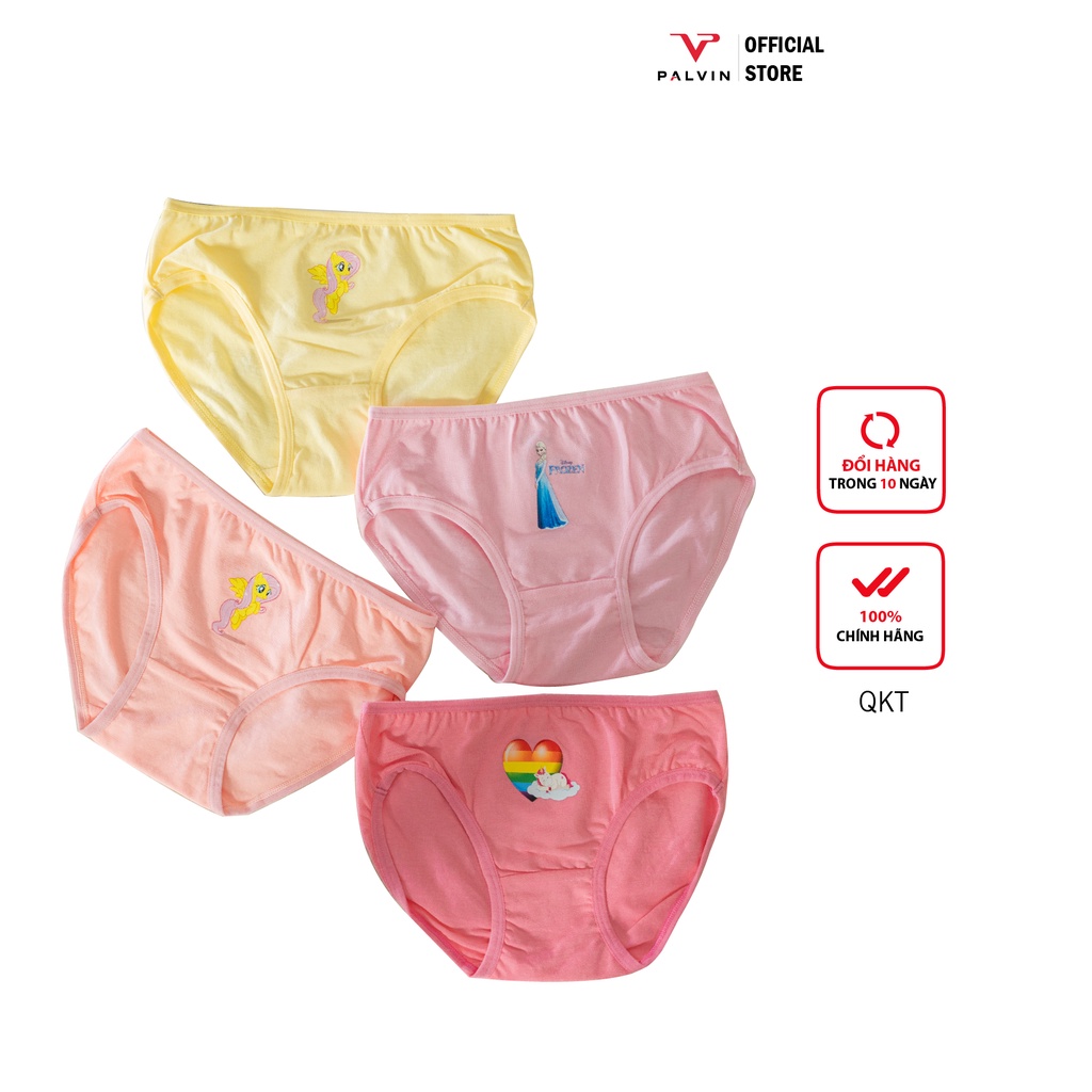 Giới thiệu Quần chip bé gái PALVIN, dáng tam giác, cotton co giãn 4 chiều, hình in công chúa elsa, ngựa pony - QKT