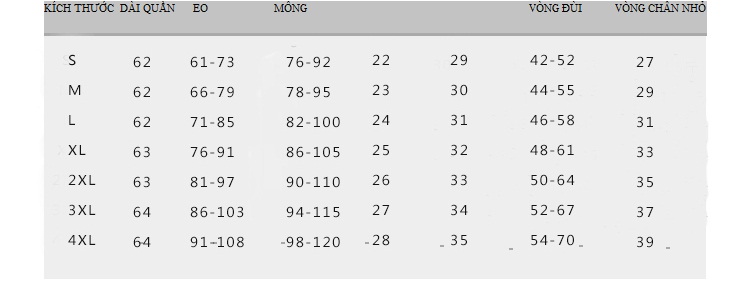 CỘT 3 DÀI QUẦN, CỘT 4 BỤNG, CỘT 5 MÔNG, CỘT 6 VÒNG ĐÙI LỚN
