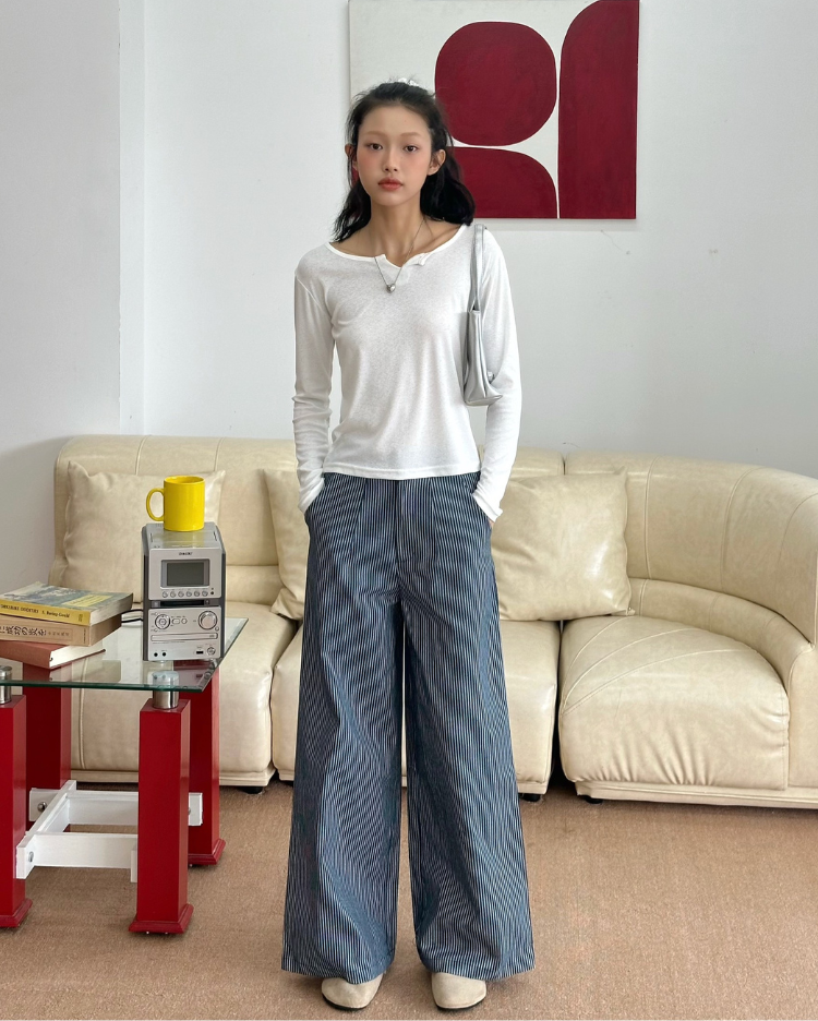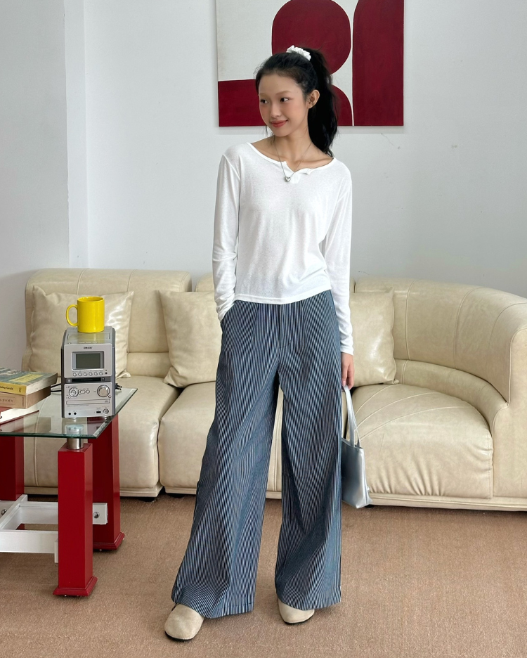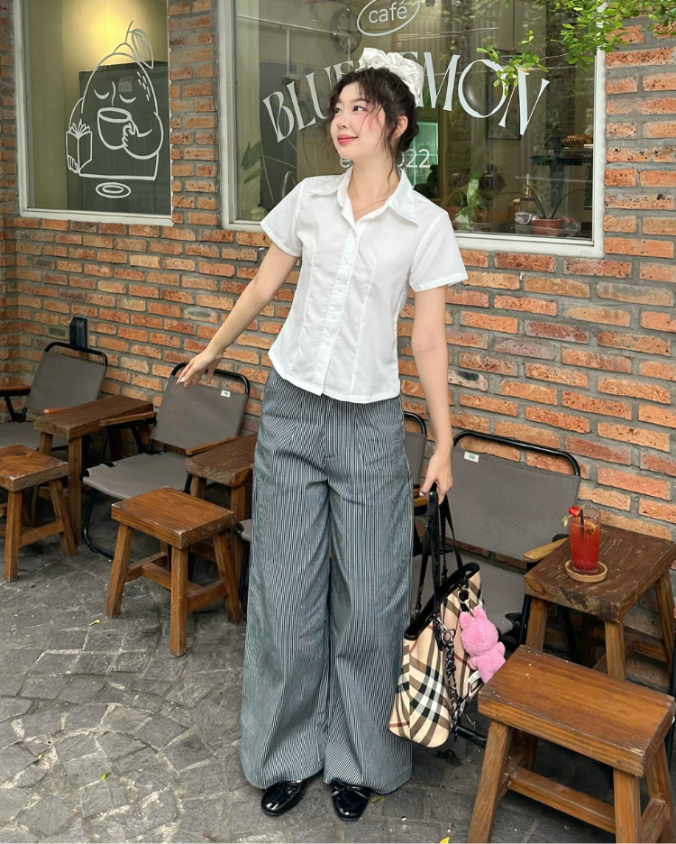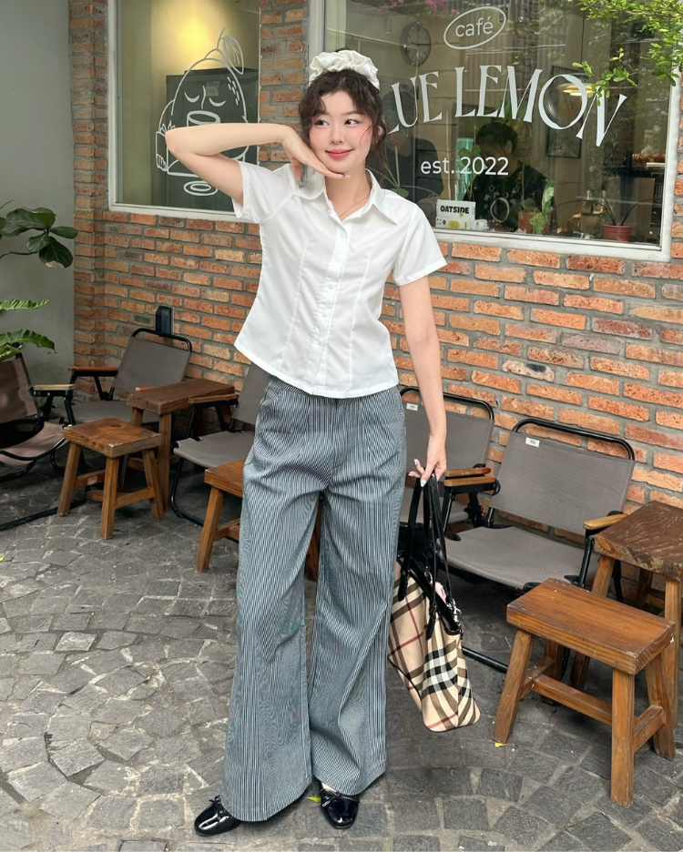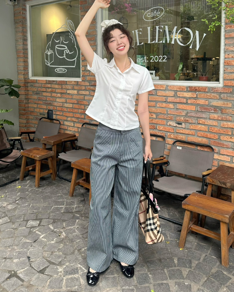 ✿ Sản phẩm : Quần dài chất liệu kaki dầy dặn dành cho nữ họa tiết sọc dọc hack dáng Stripped Miều Est.2013