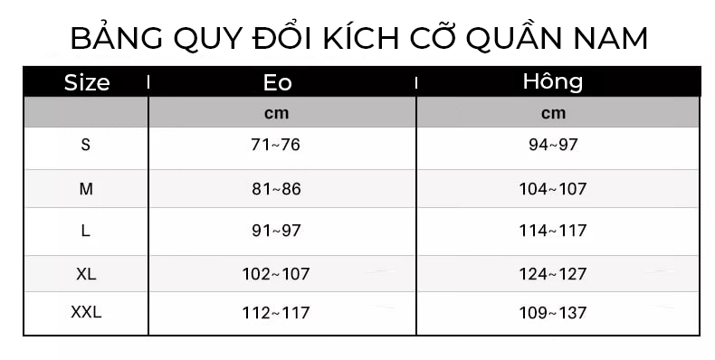- Dãy size: 30, 31, 32, 33, 34, 35
