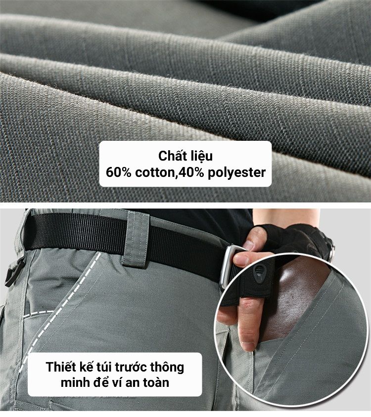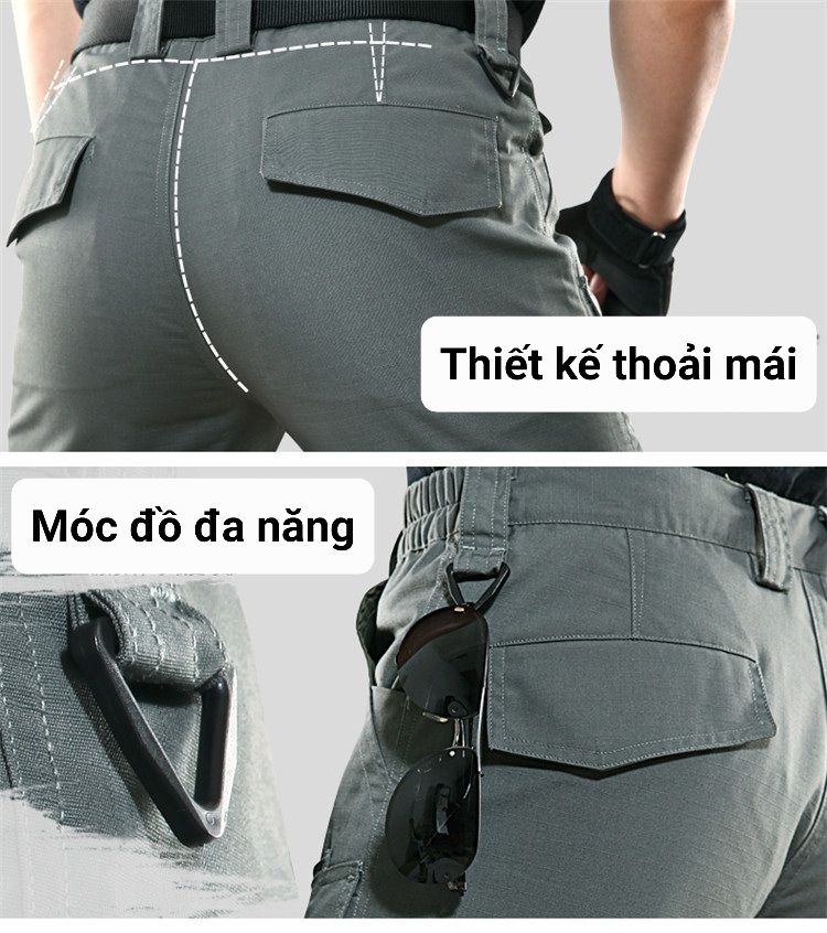 Quần thiết kế nhiều túi, bố trí thuận tiện, các túi lớn có khóa
