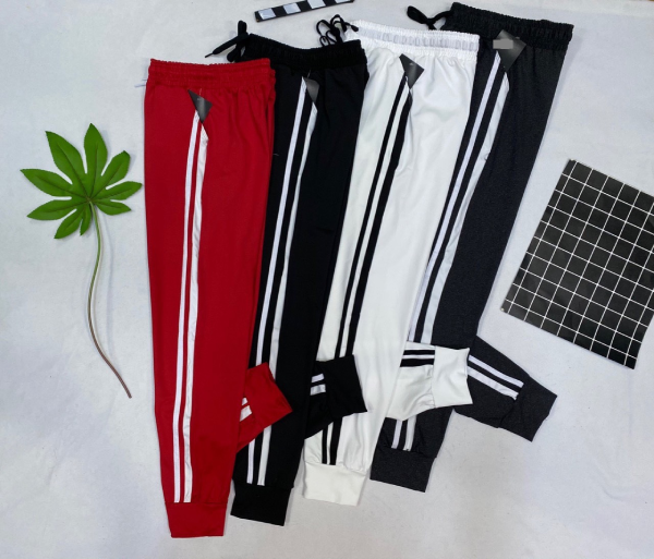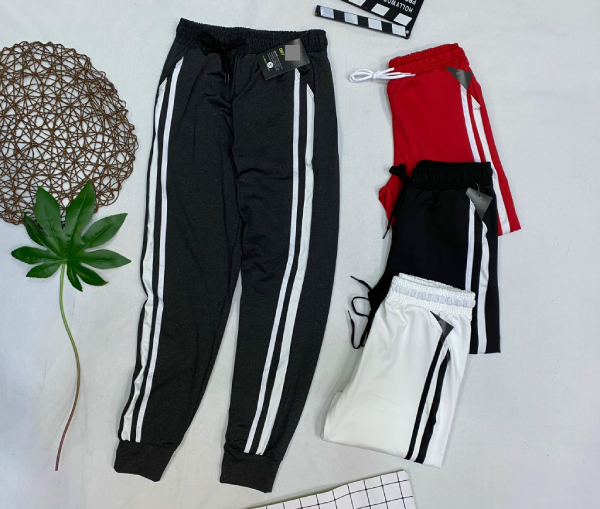 Mô tả sản phẩm: quần bo lai, lưng có dây rút, có 2 túi, có viền thể thao 2 sọc