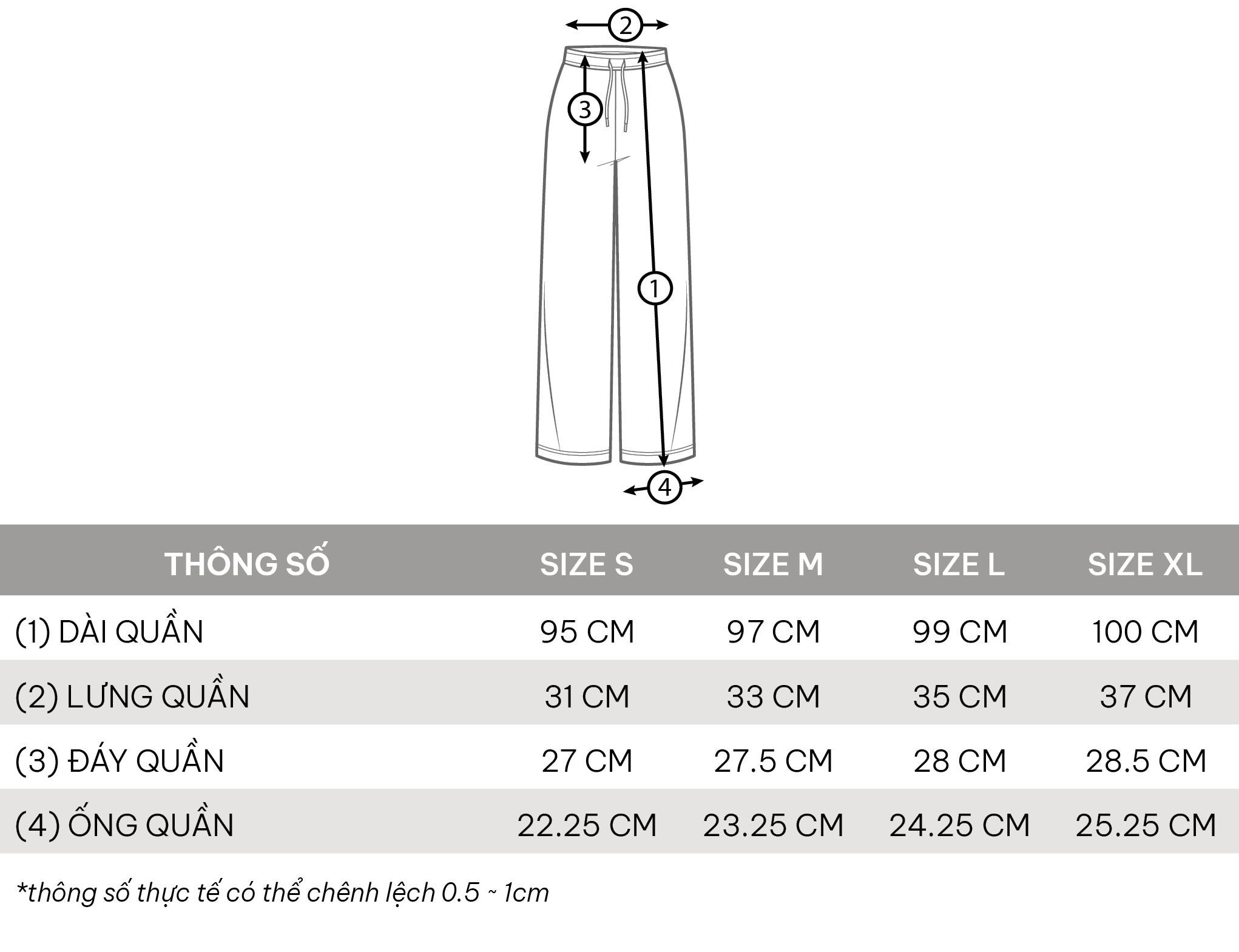 • Phần dây rút đồng chất liệu vải quần.