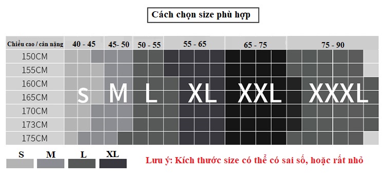 Size có thể giao động tuỳ thuộc vào chiều cao của mọi người