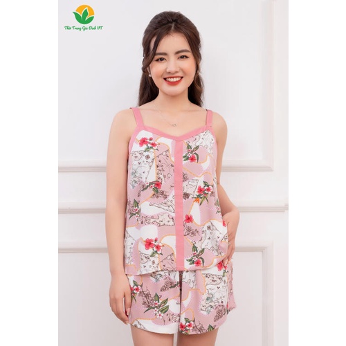 Bộ quần đùi áo hai dây lanh nữ B01.2202 - Thời trang gia đình VT