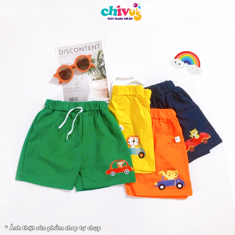 Giới thiệu Quần đùi bé trai bé gái chất cotton hoạ tiết oto CHIVU's KID quần áo trẻ em 1 2 3 4 5 6 tuổi