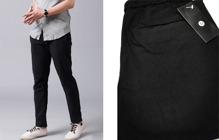 Quần được làm bằng chất vải linen (đũi) ít thấm nước nên anh em có thể ngâm nước một chút trước khi giặt để quần giặt sạch sẽ hơn.