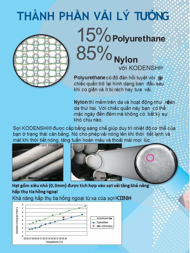 Thành phần: 85% Nylon; 15% Polyurethane.