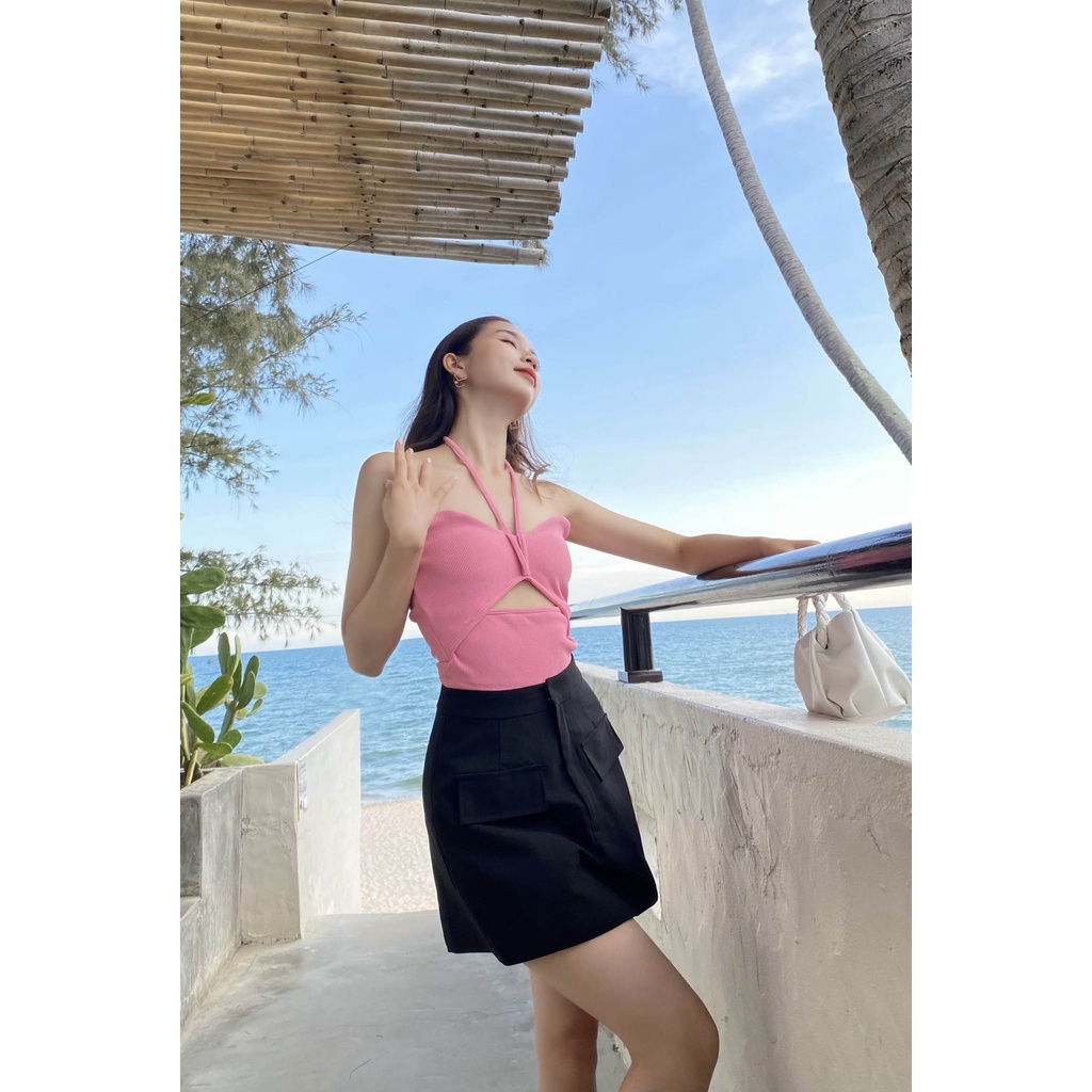 Giới thiệu Quần giả váy ngắn cơ bản 2 miệng túi đắp trước thời trang GAGO màu đen GA3886