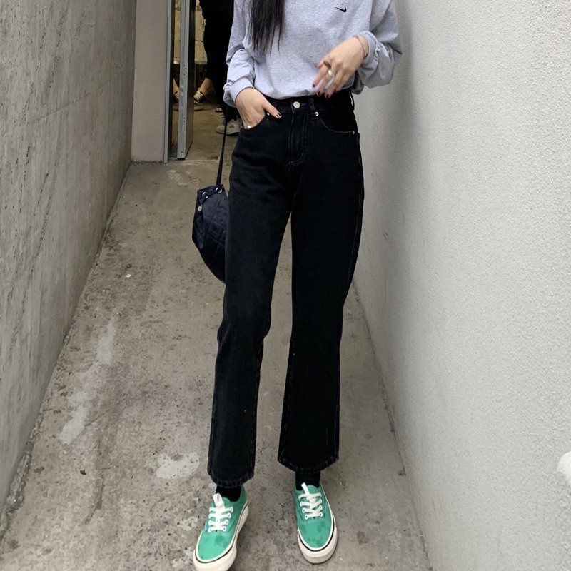 Giới thiệu Quần Jean Lửng Nữ Lưng cao Màu Đen Ống suông Ulzzang Phong cách Hàn Quốc Quần bò nữ Cạp cao Thời trang