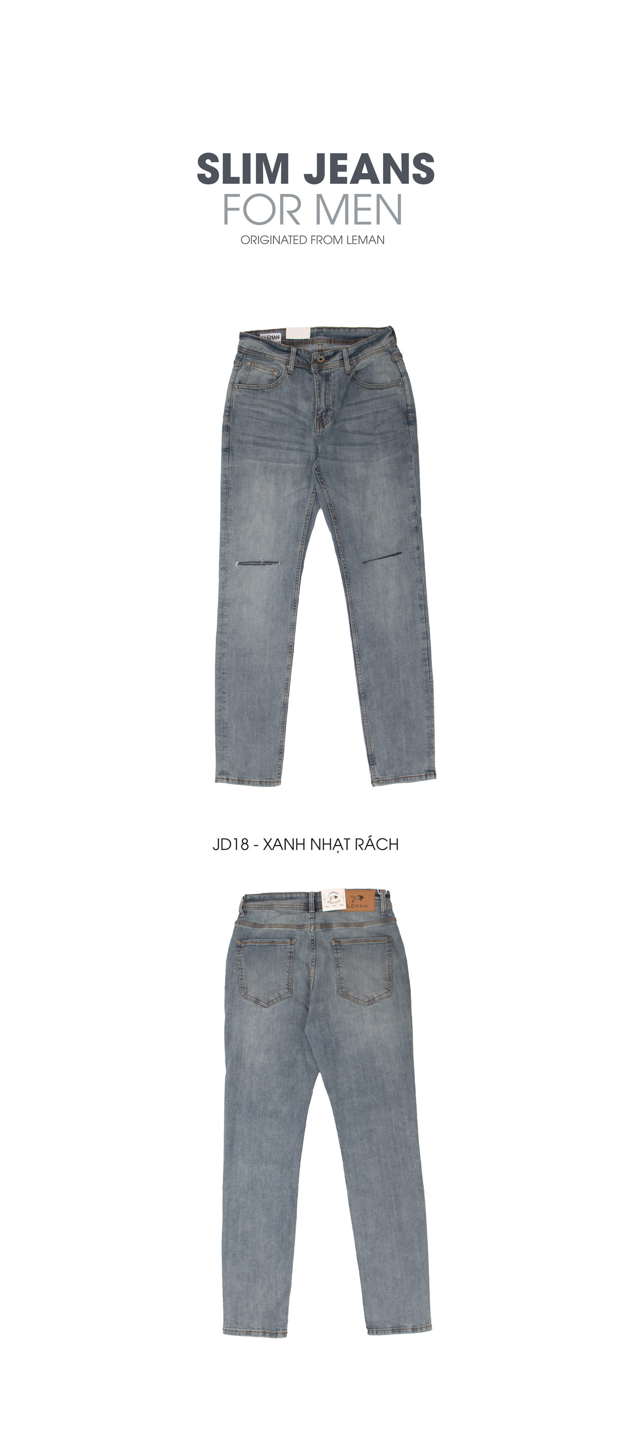 Mô tả chi tiết Quần Jean nam Leman xanh bạc rách JD18 - Slim Form
