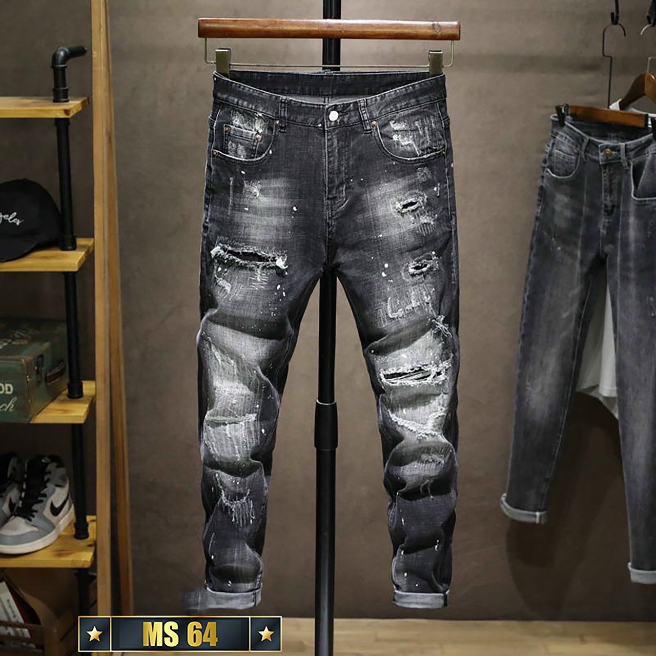 Thông tin sản phầm: Quần Jean Nam Ống Đứng , Quần Bò Nam Thời Trang Co Giãn, Phối Rách Cao Cấp Mẫu Mới 2023 OBOK Fashion MS64