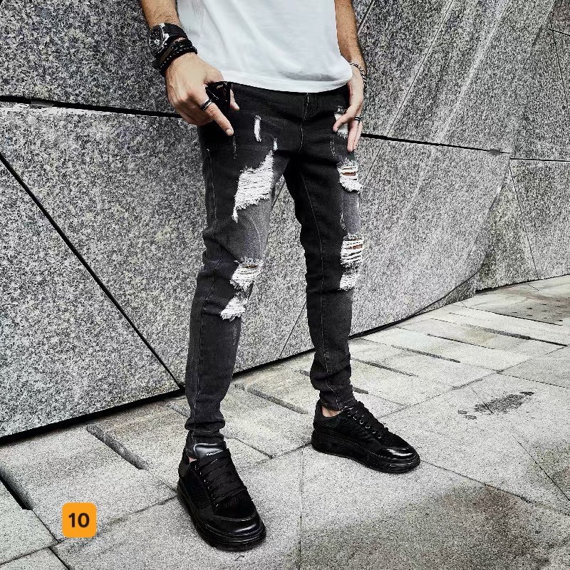 Quần Jean Nam, Quần Bò Nam Co Dãn, Phối Rách, Phong Cách Thời Trang Cao Cấp Mẫu Mới MS10
