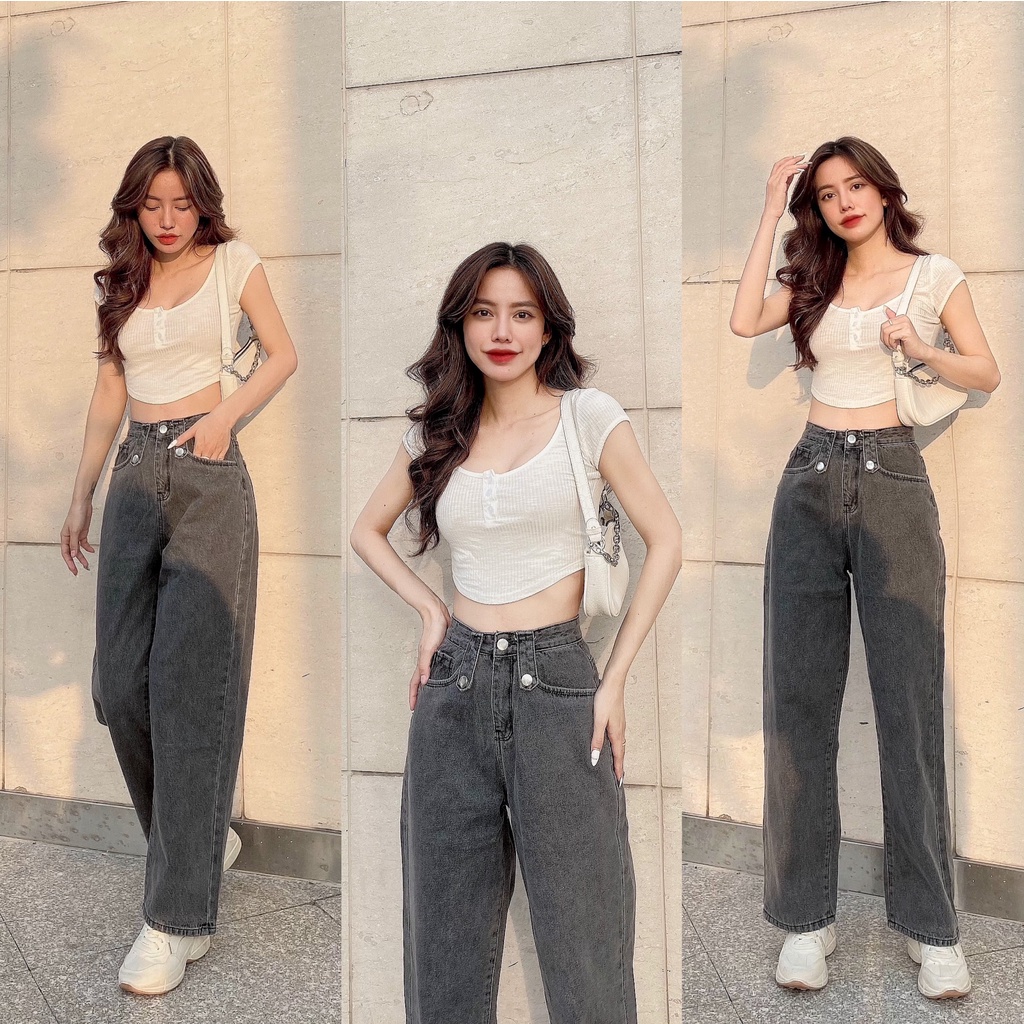 Giới thiệu Quần jean nữ baggy King168, quần nữ co dãn nhẹ mẫu THU66