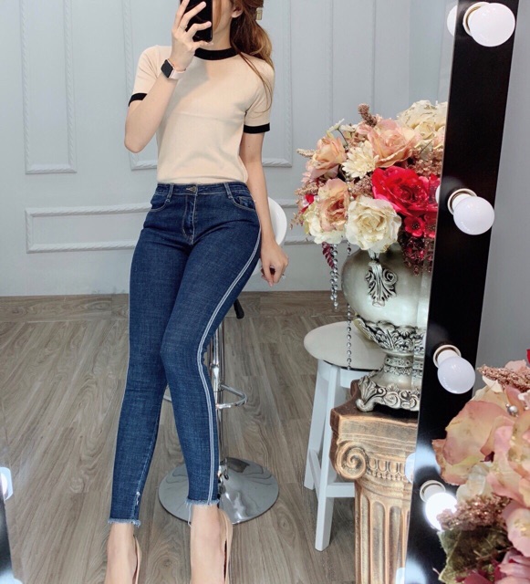 Giới thiệu Quần jean nữ lưng cao phối viền sọc QJ14