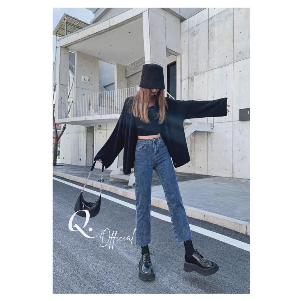 Q.official xin giới thiệu sản phẩm cao cấp Quần Jean Nữ Ống Đứng Q.official 3 Màu, Cạp Cao, Co giãn tốt