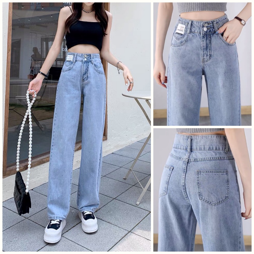 Quần bò jean nữ ống rộng, Quần bò Baggy Cạp Cao Cao Cấp | Tdshopnt - Q11