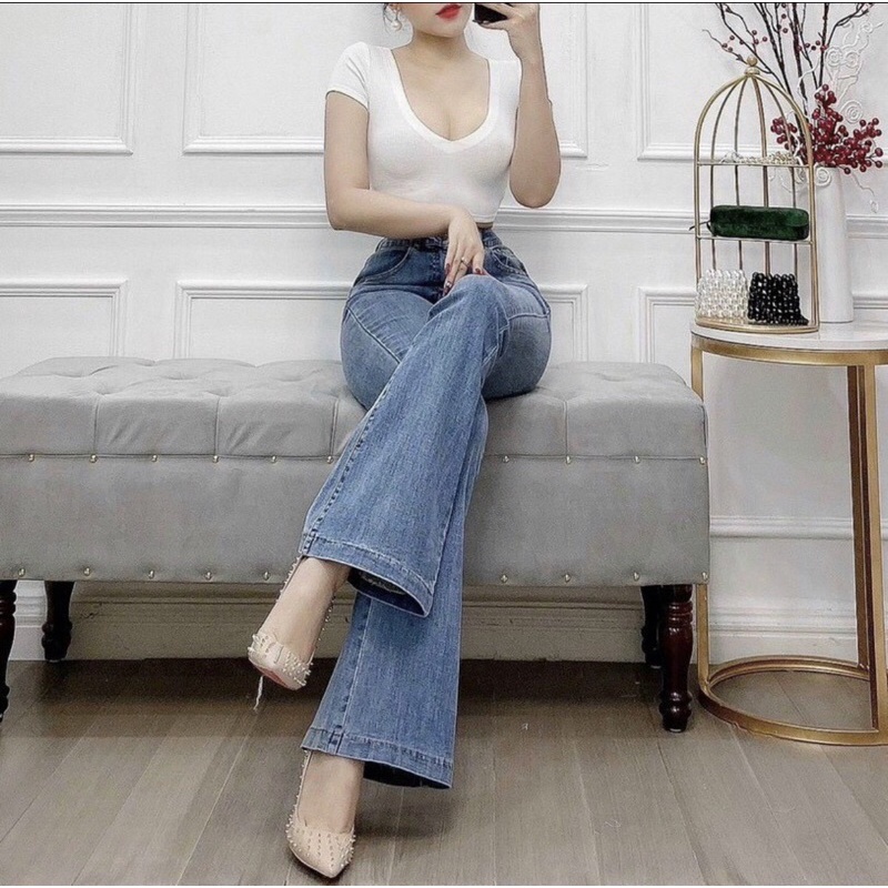 Giới thiệu Quần jean ống loequần bò cạp cao ống loe co dãn nhẹ mặc tôn dángnhiều màu